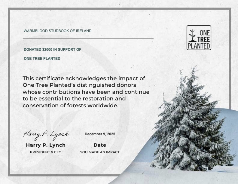 WSI awards the E+ (“Environment Plus”) predicate to every foal and older horse we register, and every stallion and mare we approve, in recognition of our planting a tree on behalf of every animal. And breeders and owners can purchase the CL+ (“Climate Plus”) predicate at the time of registration or later to help offset the carbon hoofprint of their horse from the date of registration forward. The CL+ predicate purchases at least 2 tonnes of carbon offset and 35 trees on behalf of the horse. These purchases are in addition to WSI’s own purchases of trees and carbon offsets.